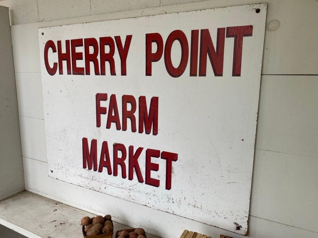 Our first point of interest was the Cherry Point Farm Market. I really wanted a bowl of deep red cherries based on the name, but didn’t see any. They did have a bunch of Michigan-themed merchandise, and also baked goods. I had some old-fashioned donuts. I have zero food guilt on a bike tour.
