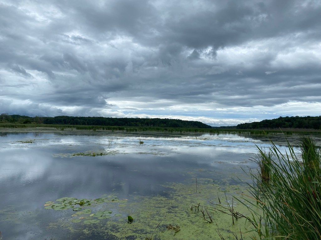 It was so hot and still last night that I couldn’t sleep down here in the Lower Peninsula either. Had to leave the tent door open; it was just too warm otherwise. Around 10pm a strong wind picked up which helped, but it remained bad sleeping weather. I didn’t get very good rest, and woke up a lot. It thundered quite a bit in the middle of the night, and there were a few rain patters, but I heard today that the major weather missed us.