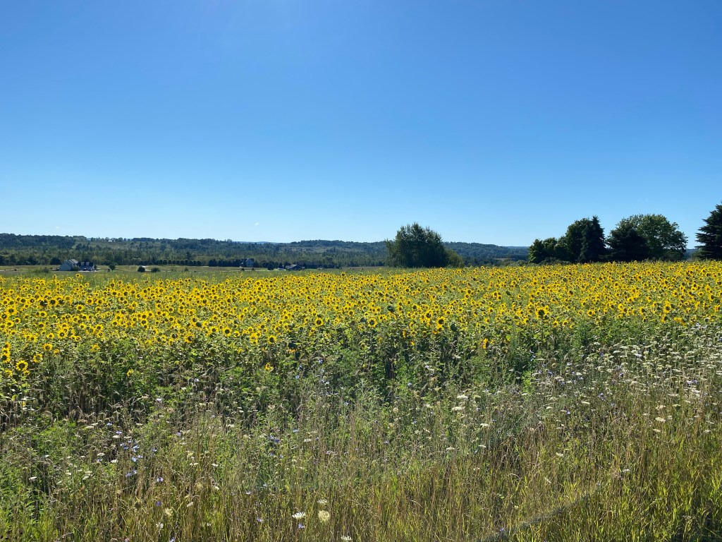 Most of the day was rolling hills through farmland, with fruit trees and some sunflowers.