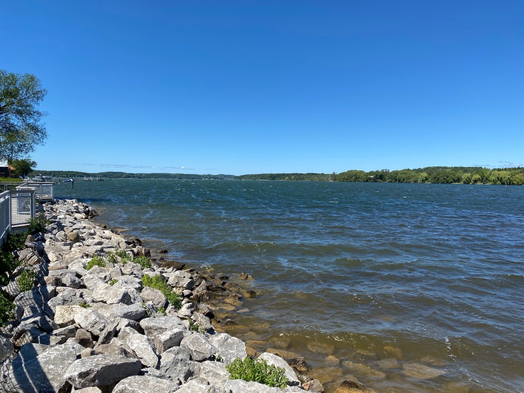 Cynthia and I had dinner, got cleaned up, and walked about a mile into town, where we got some snacks and a couple of beers to take back to camp. We walked down to the waterfront while we were there. I was also pulled into an ice cream shop by the mysterious magnetism that ice cream has. ‘Twas yummy and a good reward.