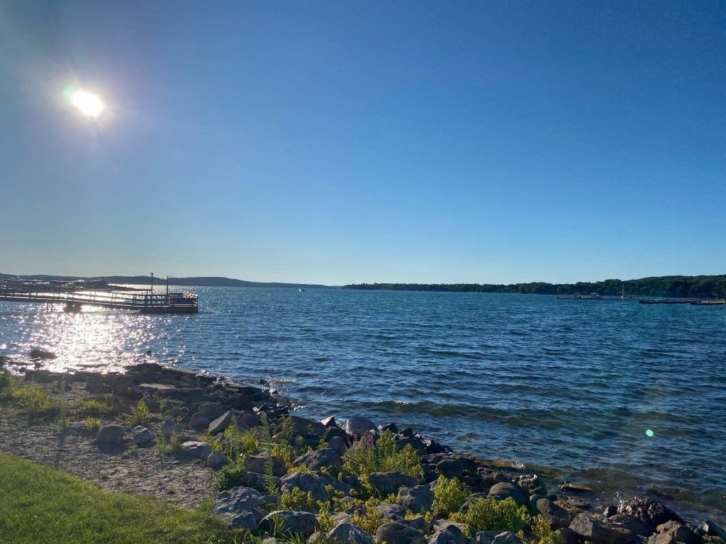 It was only a few more miles until we hit Boyne City around 4pm. We’re camping at the high school on the softest baseball field grass ever. It’s like a carpet.