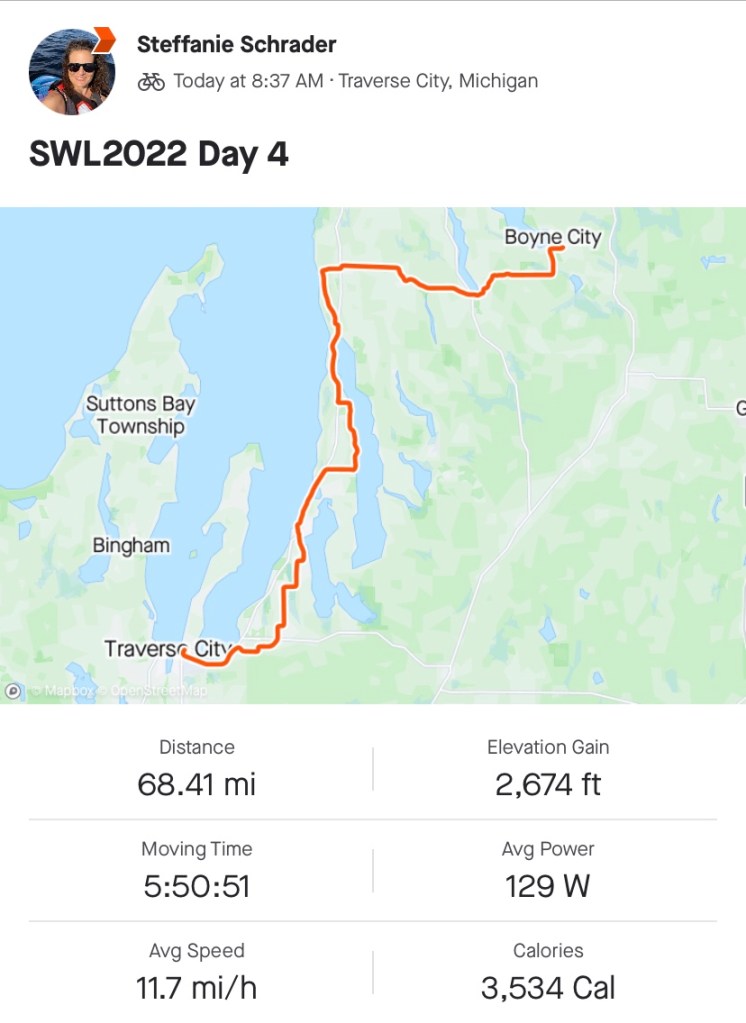 We were able to leave Traverse City riding on the TART trail again, which was easy and quiet, with nice scenery.