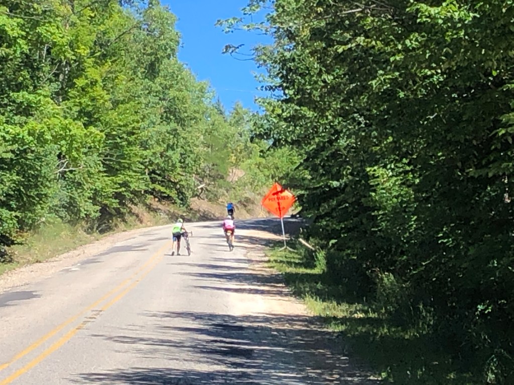 A lot of people walked it. I was not one of them. I kept pedaling, uncomfortable but strong and steady, until I reached the top. Then I cheered out pound and enjoyed the descent.