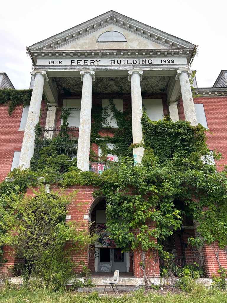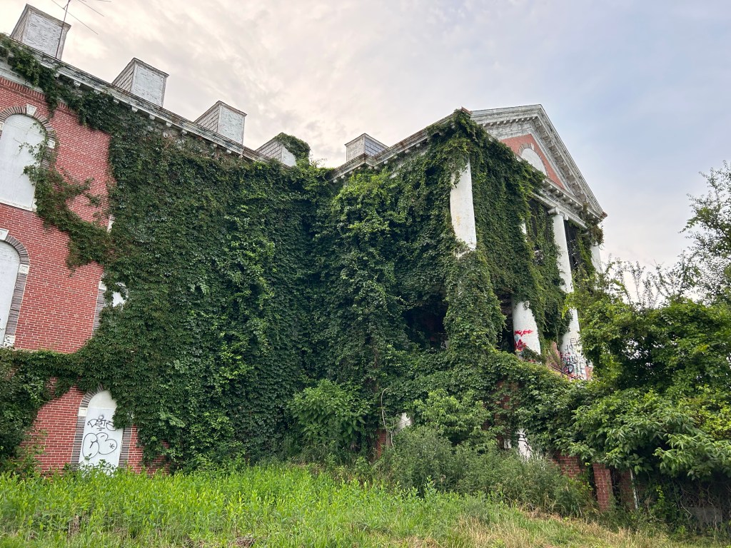 As always, I’m fascinated by how a large beautiful building is one day just locked and walked away from. It’s strange to see something that was once built with so much detail just left to nature.