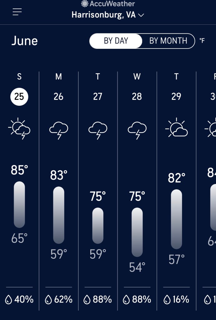 As you can see from the picture, there was plenty of sun today, not to mention humidity. Pretty sure I’ll never want to move to Virginia.