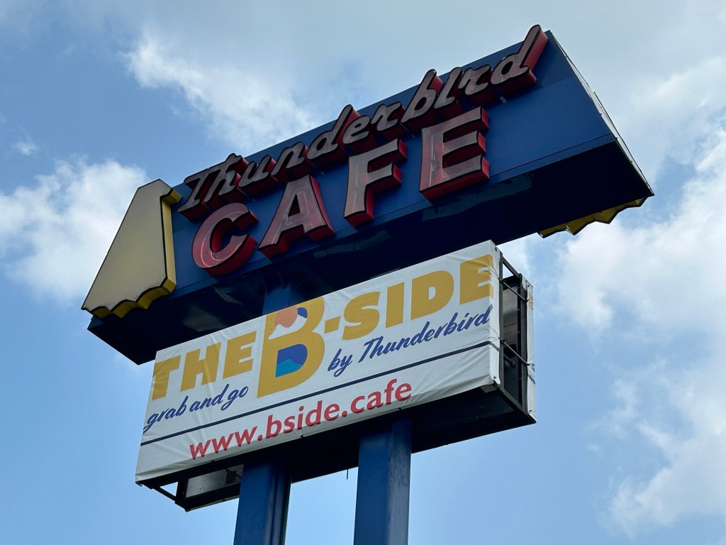 We pedaled on for another 45 minutes or so into the town of McGaheysville, where the comfort choices abounded (there were like three places we could eat). We chose the Thunderbird Cafe since I was in the mood for real food; neither of us had a proper breakfast before leaving. I expected other cyclists to be in there, but they all seemed to have chosen the Kline’s Dairy Bar next door. We walked in and gave the rest of the customers quite a shock, to judge from the looks we got. I’m assuming they don’t see a lot of cyclists there on a normal day. But we didn’t get chased out of the place or anything, so we had a good lunch, with about 20 miles to go.