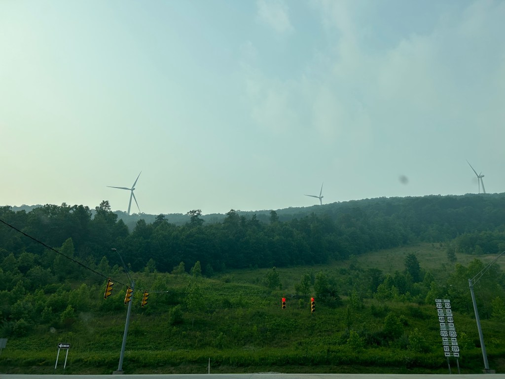 Remembering how dull the Penn and Ohio Parkways were, I decided to take the southerly route back to Michigan. I added half an hour but saved myself a lot of traffic plus $11. Also, the route was beautiful. I followed US 33 West / Rawley Pike, which hugs the mountains through forests and past lookouts. I would have stopped to see the views, except the views were mostly obscured by the smoke of the Canadian wildfires again, the air white, the sun a dull orange ball. It would have been a very lovely drive into West Virginia if not for the smoky haze. It was still great, but everything looked weird and wrong and vaguely unsettling.