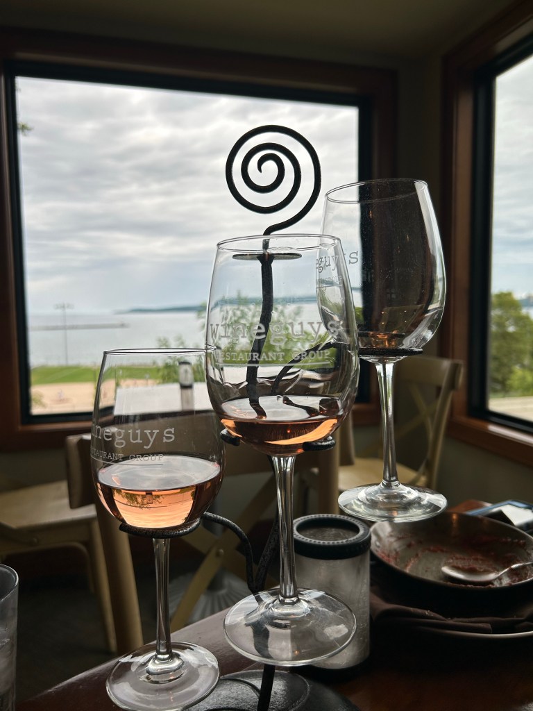 At this point we were looking for lunch, and decided to seek out the Palette Bistro, which was described on Google Maps as a Mediterranean cafe. Bill had enthusiastic visions of baba ghanoush with a view of the bay, but after we sat down with the menus it became clear that this was not that kind of Mediterranean place. We did get a great table with a nice view, and after making peace with the menu, it was a wonderful lunch. We started with baked feta to share, and I had a Rosé flight. For my main I had quiche on a bed of mixed greens, and an amazing crème brûlée to finish. A bit of a pricey lunch but it was so worth it.