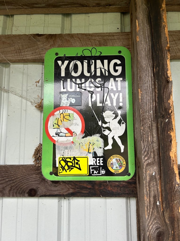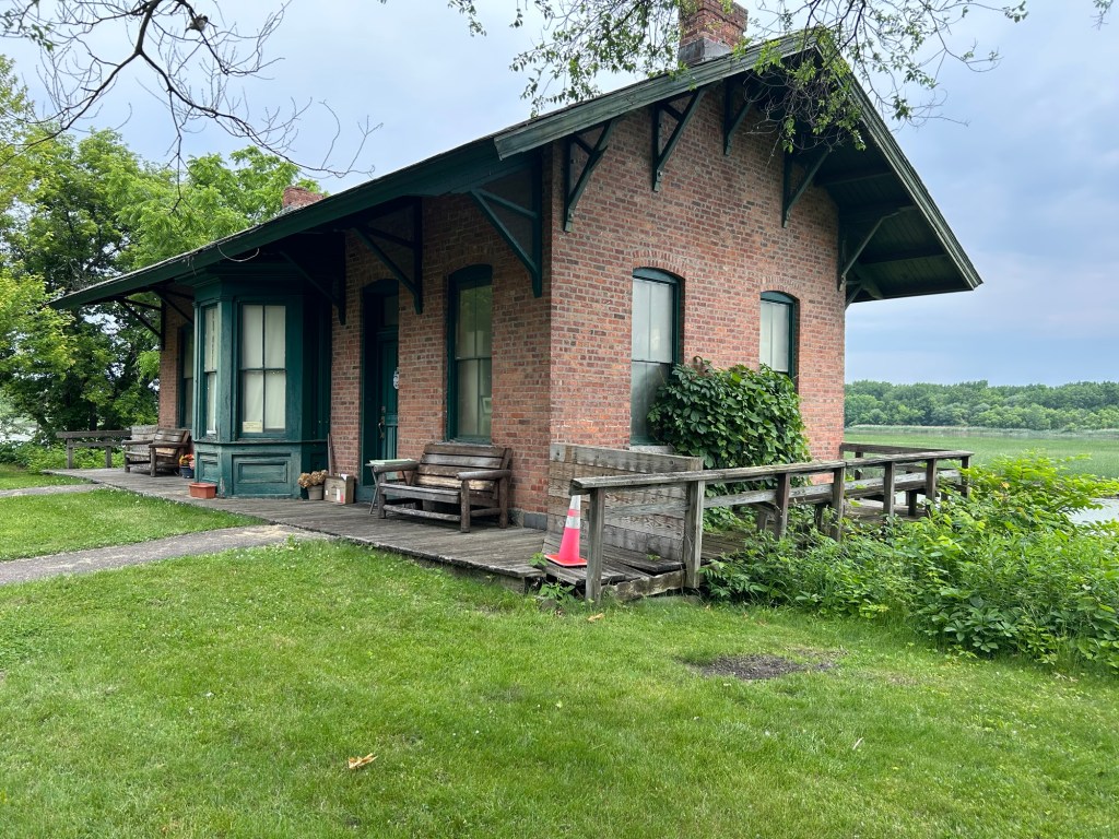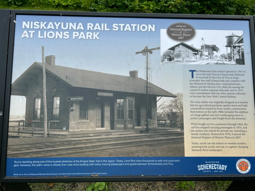 In the town of Niskayuna there was a nice park with this interesting little old train station; we were at that point on a rail trail (but still part of the Canalway).