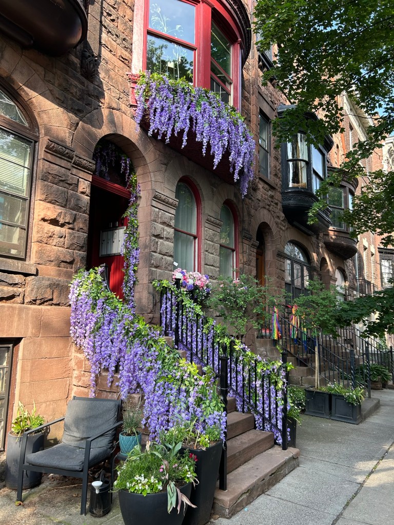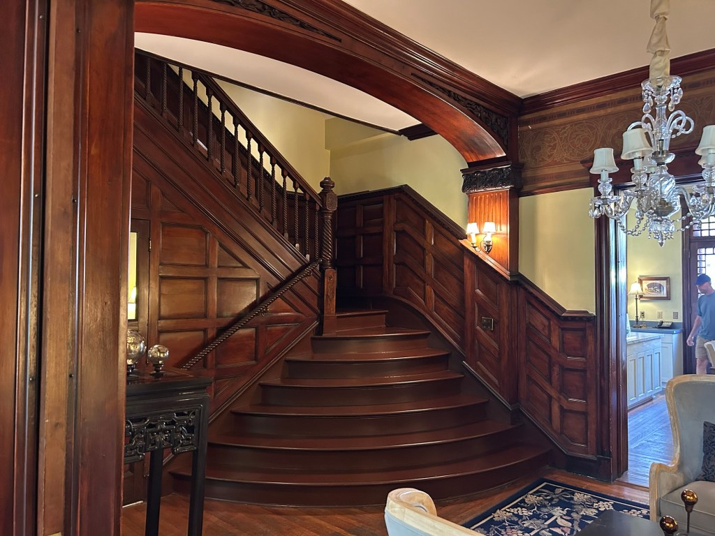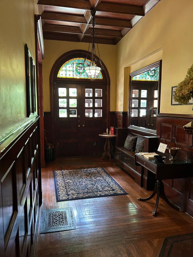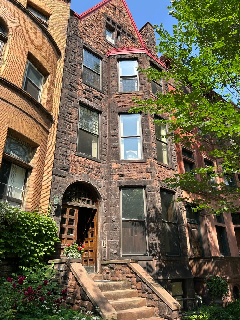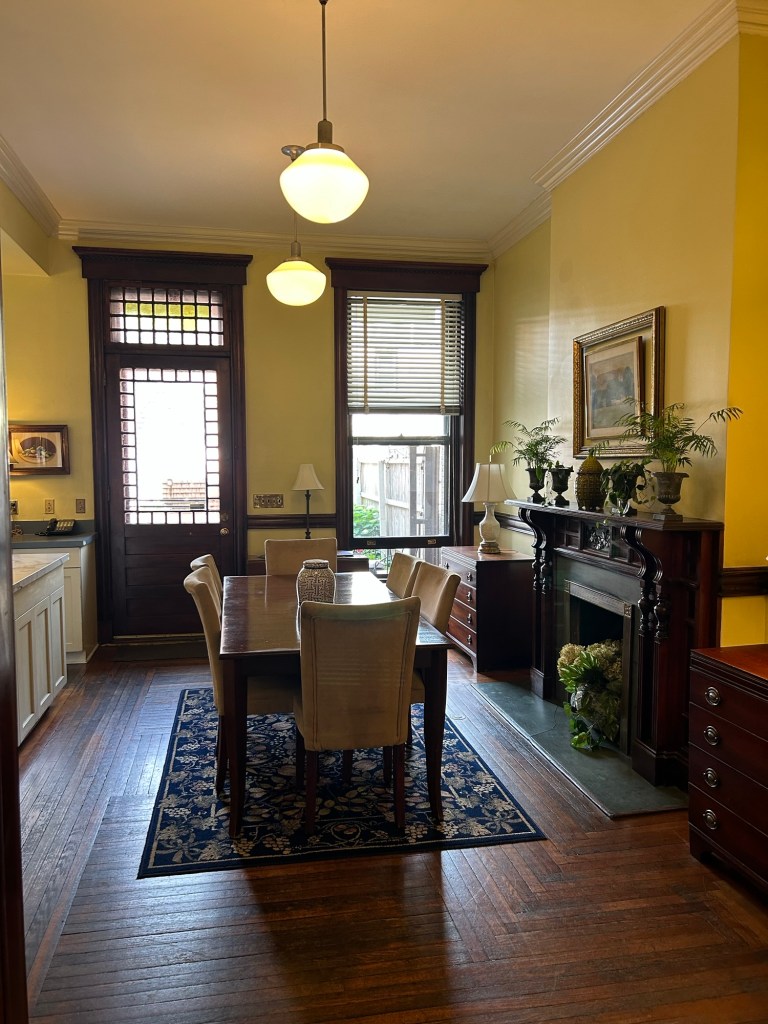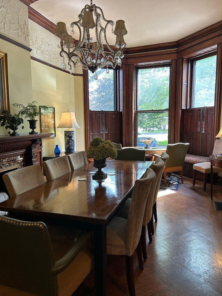 We had to go far past the big hotels near the interstate to get to our hotel, but we have been rewarded for our efforts. We’re at the Morgan State House, a gorgeous brownstone from 1884 across from Washington Park. We are in the “Garden” room, which features its own library room. The whole house (that we have access to) is awesome, and is one of the loveliest places I’ve ever stayed.